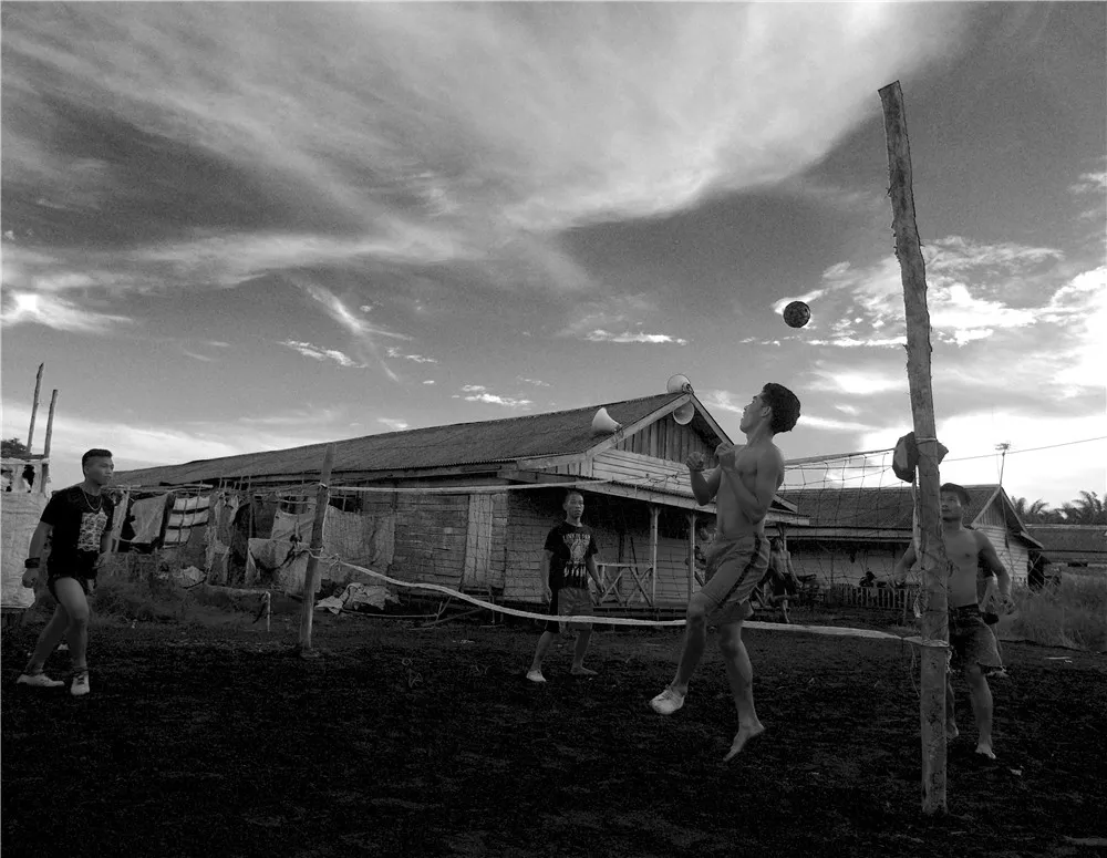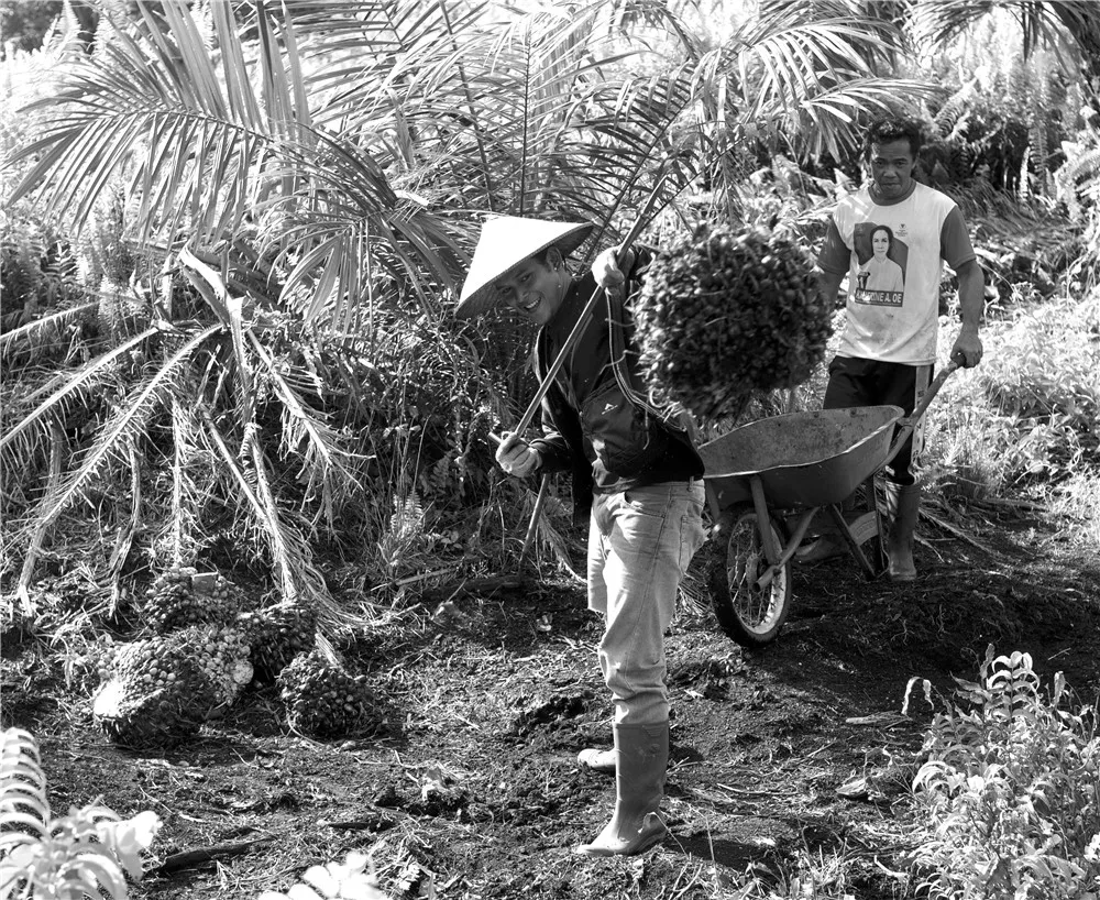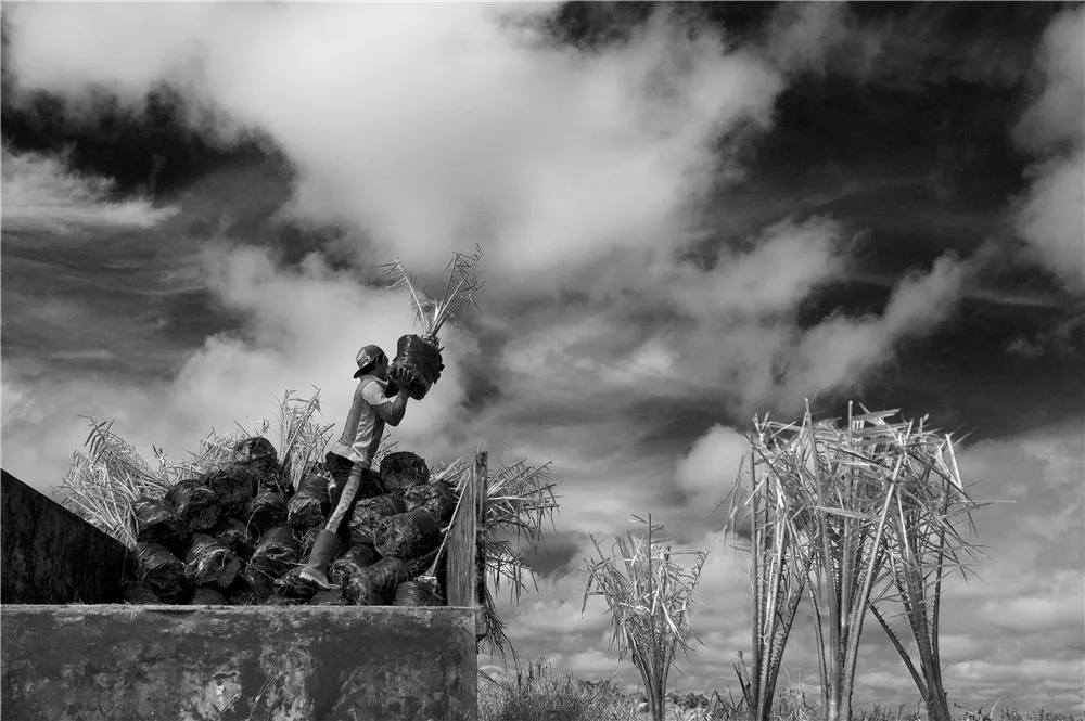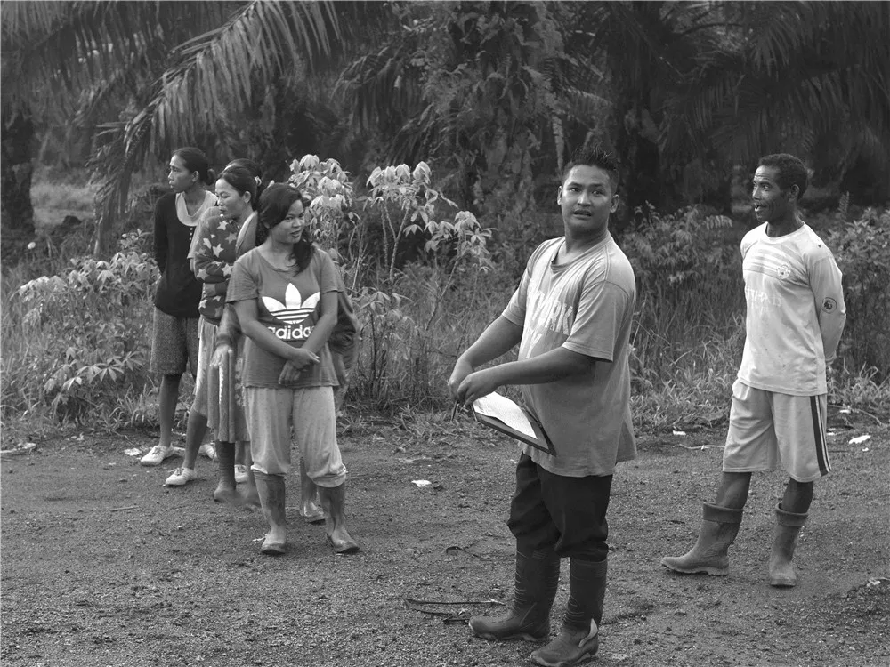 遥远而熟悉的加里曼丹岛,仿佛一块绿毯漂浮在海洋上,赤道艳阳、雨林暖风呵护着万物与生灵,地域辽阔、河道纵横,土地上枝繁叶茂,城市与村庄散落四方,可称为千岛中的“大陆”。十五年前,几位天津人远渡至此,跋涉在沼泽荒滩,把一个中国名字“聚龙”播种在沃土里……。棕榈树长在许多地方,高低形态有异,但能够生长出优质榨油果实,只有赤道两边。它是食品工业主要原料,也是我国缺短的物资。五千多个辛苦而执着的日日夜夜,十片棕榈绿州在荒滩上拔地而起,榨厂灯光彻夜闪亮,一船船油脂运往世界,运回祖国。创造物质,那是丰富生存的需要,但生活中离不开信仰、精神、文化、劳作,相互相成构建完整的群体氛围。这片吹拂着中国风的棕榈树下,种植园中,同样有着喜怒哀乐的生活。我用相机感受日常与人群的温度……